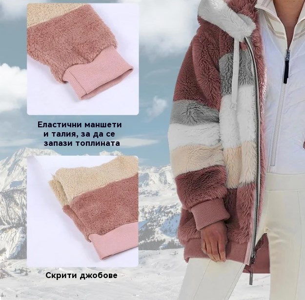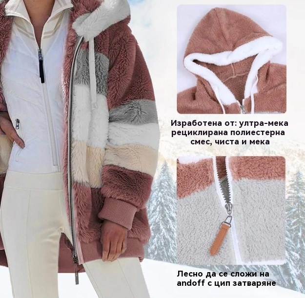 ✨Широко плюшено яке с качулка и джобове с цип-4125427