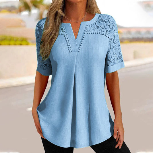 【S-3XL】 Nowa damska koszulka z krótkim rękawem, przeplatana koronką