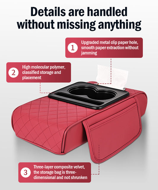 Uniwersalna skórzana nakładka na podłokietnik samochodowy 4 w 1 ✅ Wbudowane pudełko na chusteczki ✅ Uchwyt na kubek-3931803