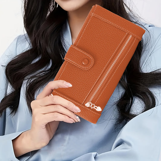 💰[Kup 1, a 1 dostaniesz gratis]Damski portfel z prawdziwej skóry w stylu retro z wieloma miejscami na karty, z podwójnym zamkiem błyskawicznym-3908968