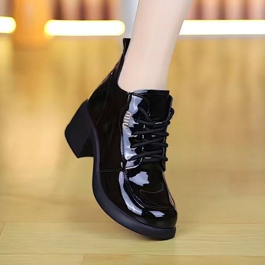 🌈👞【35-40】2025 wiosenne damskie skórzane buty nowa moda grube podeszwy wysokie obcasy buty-3891145