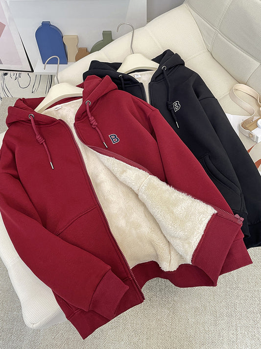 🔥⛄【M-2XL】2024 Jesienno-zimowa modna, pogrubiona i aksamitna damska codzienna kurtka z kapturem-3792203