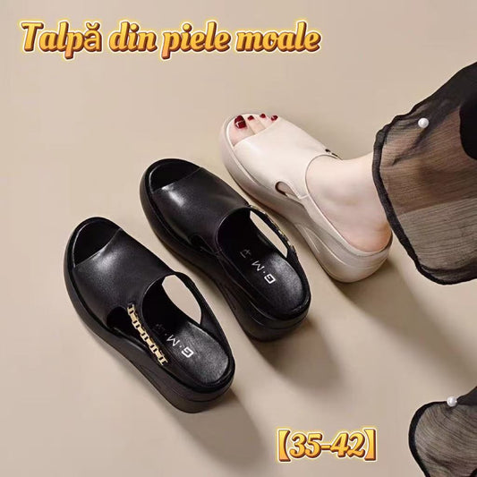 🔥👡【36-43】Sandały damskie ze skóry naturalnej na platformie zwiększające wzrost