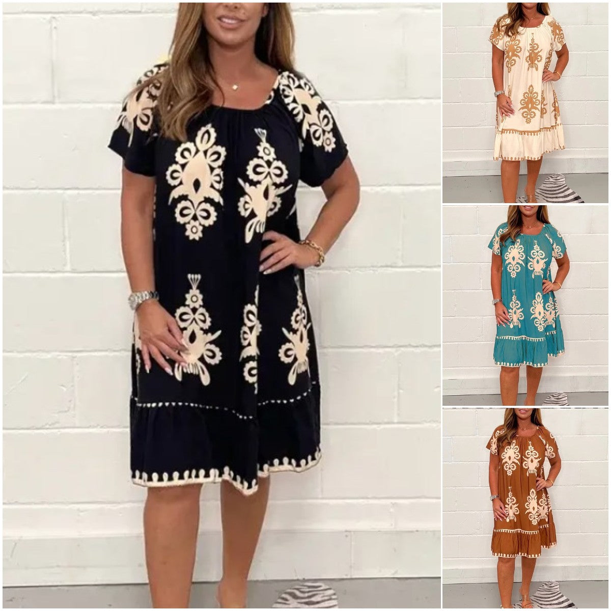 🤩🌹【S-4XL】 Kwadratowa sukienka z geometrycznym wzorem Multi Print-3671522
