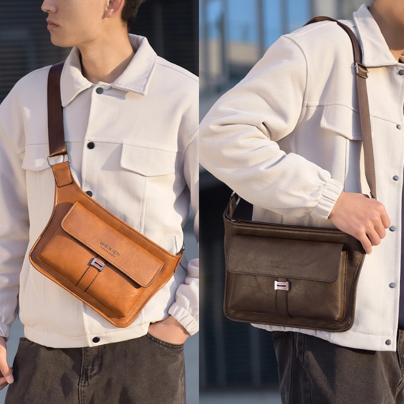 🎉👜Prosta, wodoodporna i pojemna męska torba na ramię wykonana z wysokiej jakości przenośnej skóry syntetycznej PU. 4170893