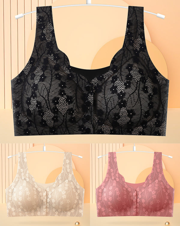 😍😍 【Kup 3 sztuki, 3 sztuki otrzymasz gratis】 【40-100KG】Damski, bezprzewodowy, koronkowy biustonosz zapinany z przodu,Ostatni dzień-4113223