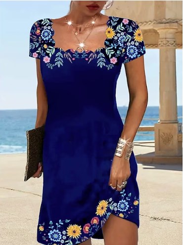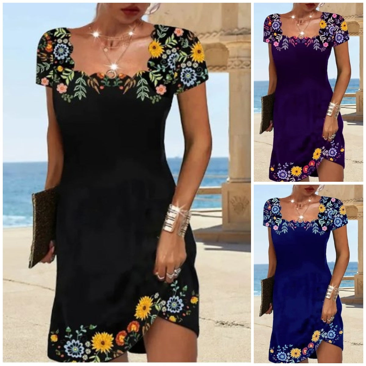 【Oryginalna zniżka fabryczna 45%】2025 Summer Wave Neck Print Short Sleeve Dress-3954716