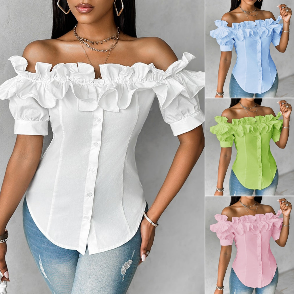 【S-XXL】Asymetryczny, marszczony, warstwowy top z odkrytymi ramionami-3653643