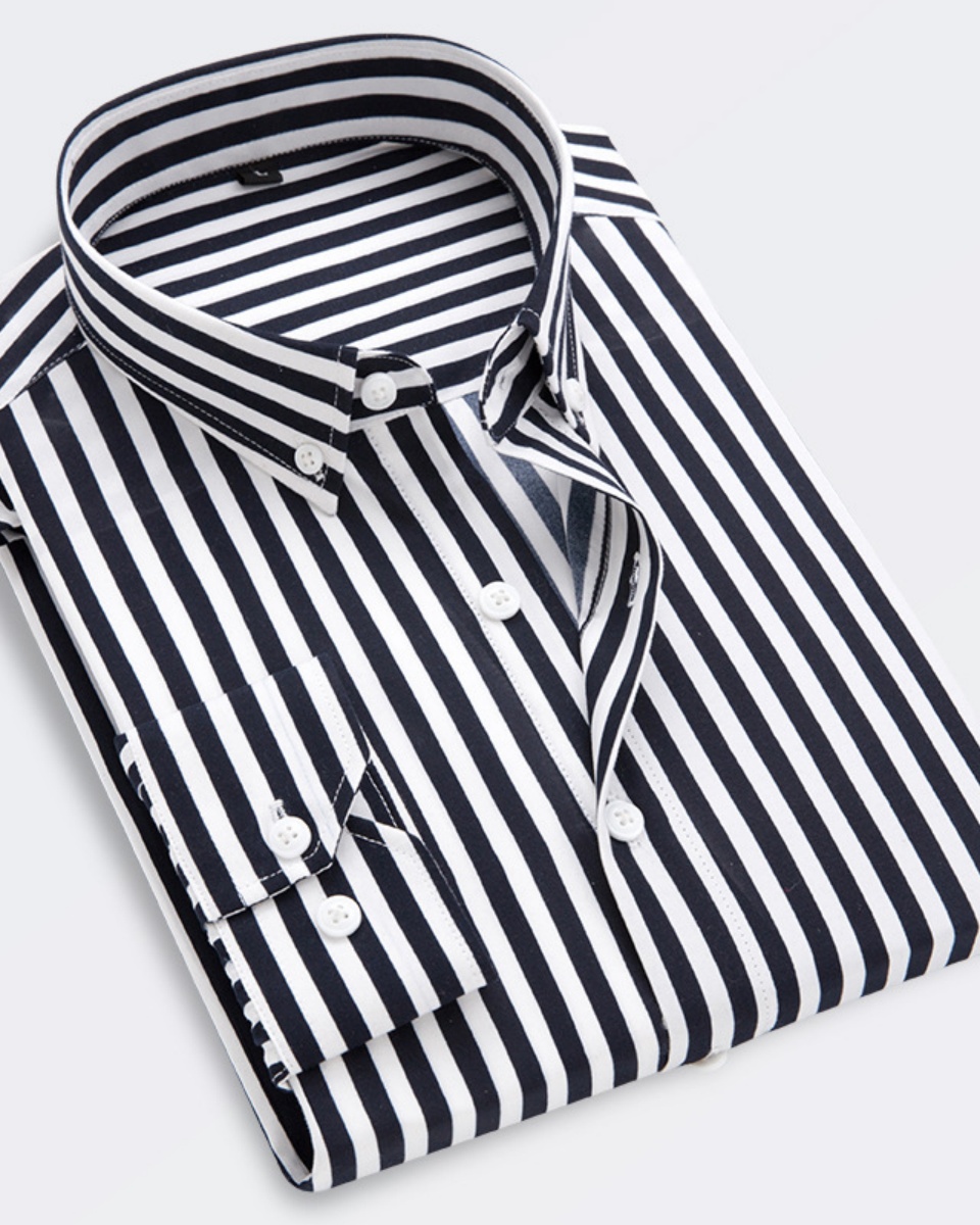 Camisa de negocios a rayas de manga larga para hombre 【M-5XL】 4168800