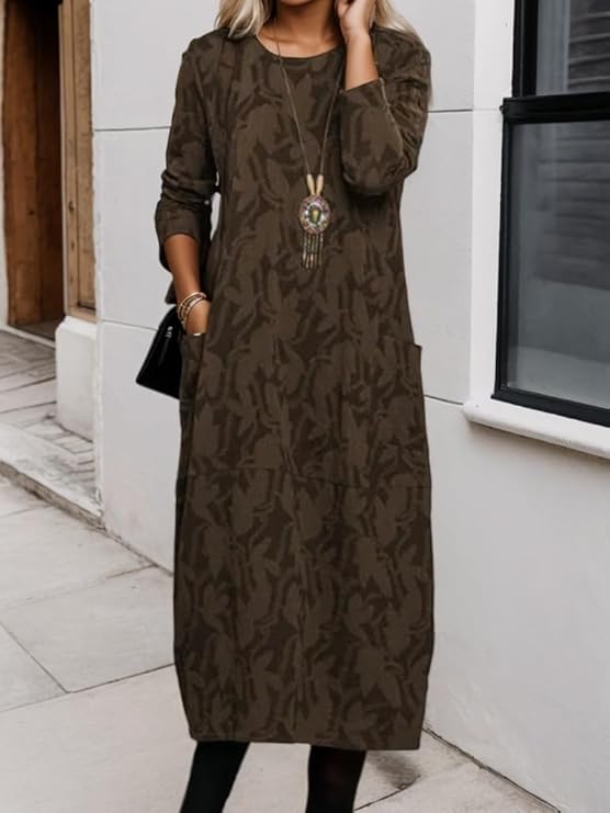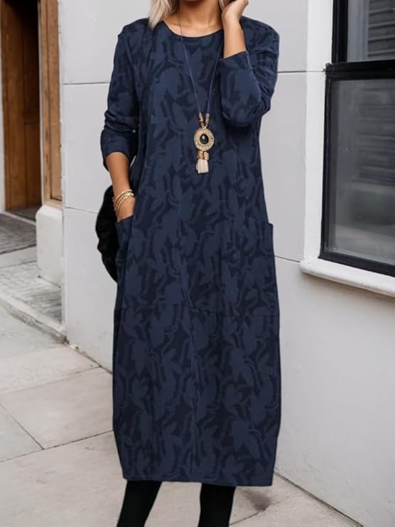 ✨【S-3XL】2025 Nowa damska sukienka z nadrukiem, okrągłym dekoltem i długim rękawem, czysta bawełna, miękka i wygodna-4168908