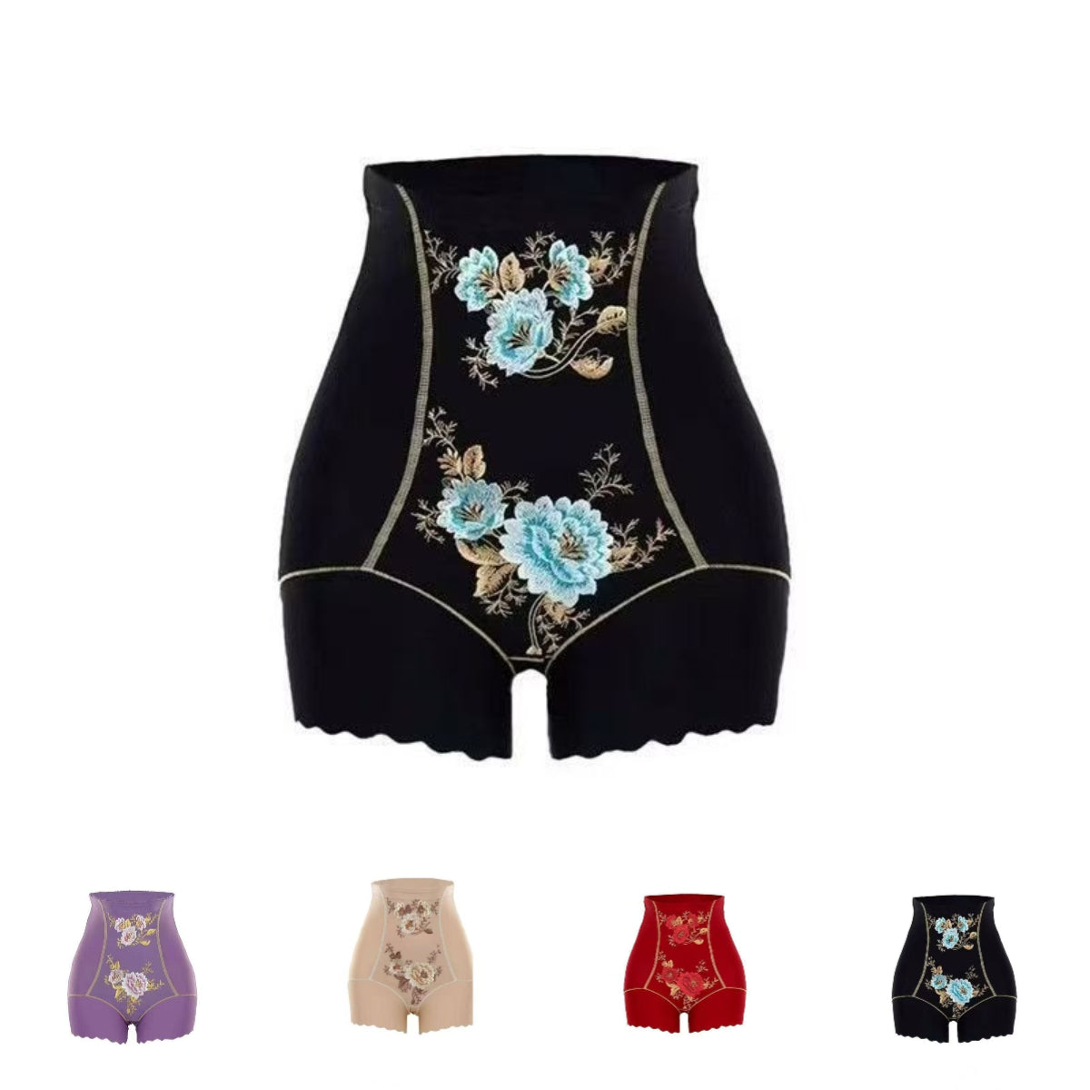 🔥🩲【5 par bielizny dla】Ostatni dzień – 50% zniżki – Antybakteryjne majtki z wysokim stanem, modelujące brzuch, z kwiatowym haftem-4213480