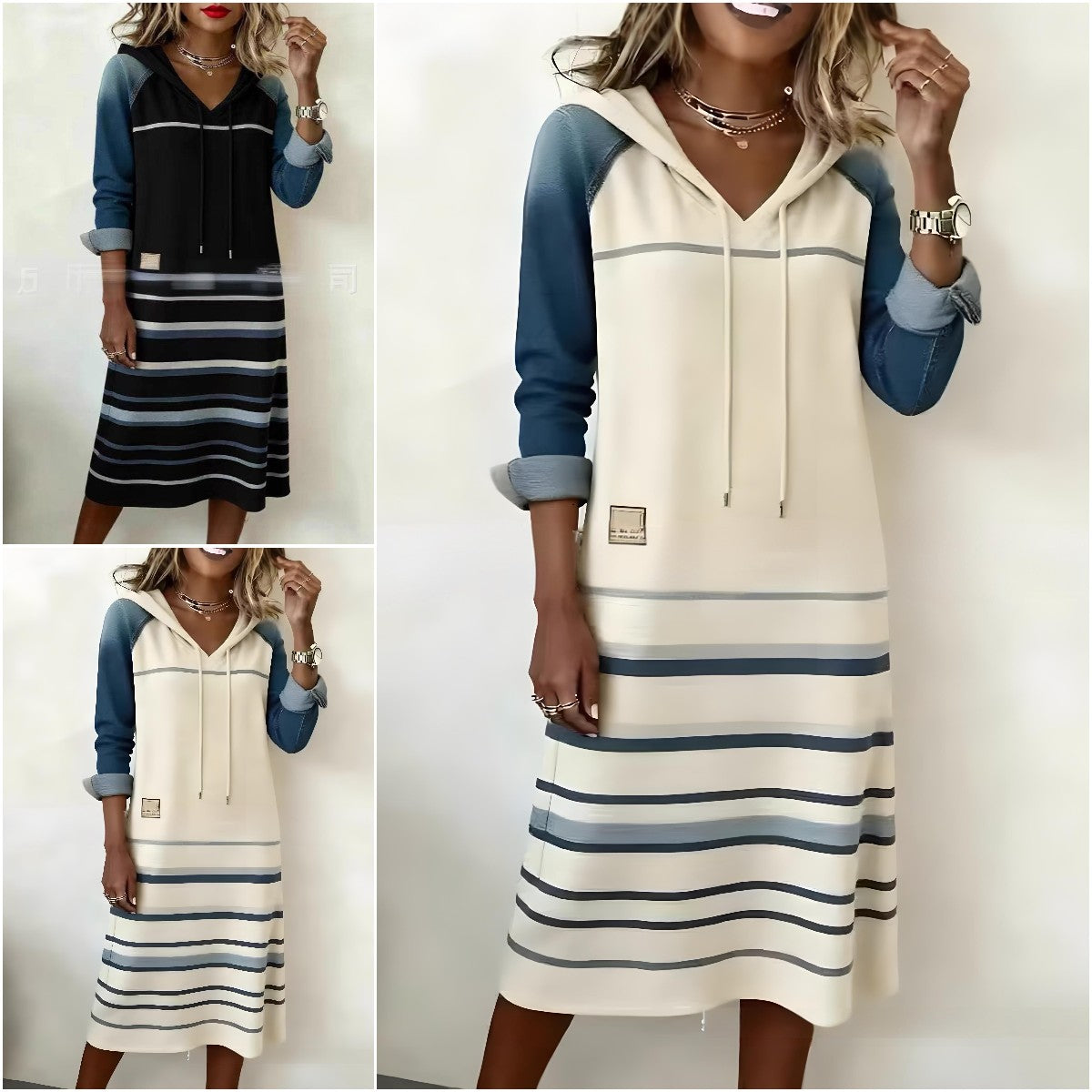 šŸ”„ć€S-3XL怑Nowa, najlepiej sprzedająca się bluza z kapturem z denimu w bloki kolorów 4165919