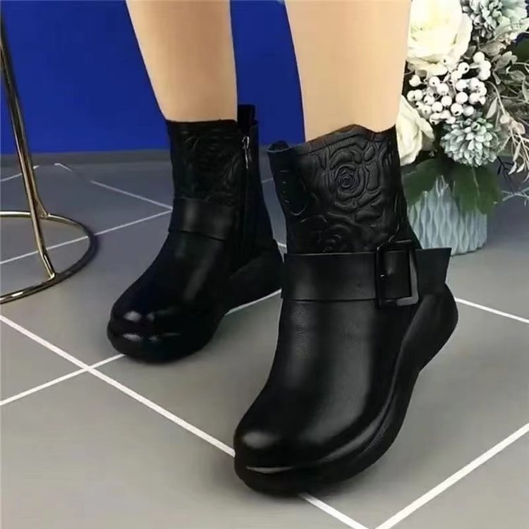 【35-40】Nowe buty zimowe z grubą podeszwą i okrągłymi noskami z prawdziwej skóry-3843802