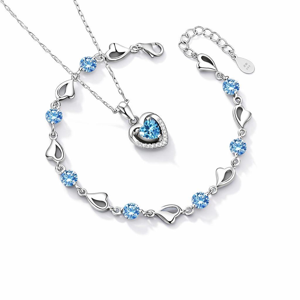 Zestaw bransoletki i naszyjnika z srebra próby 925 „Serce Oceanu”-4213469